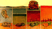 Ilustración de tres animales prehistóricos